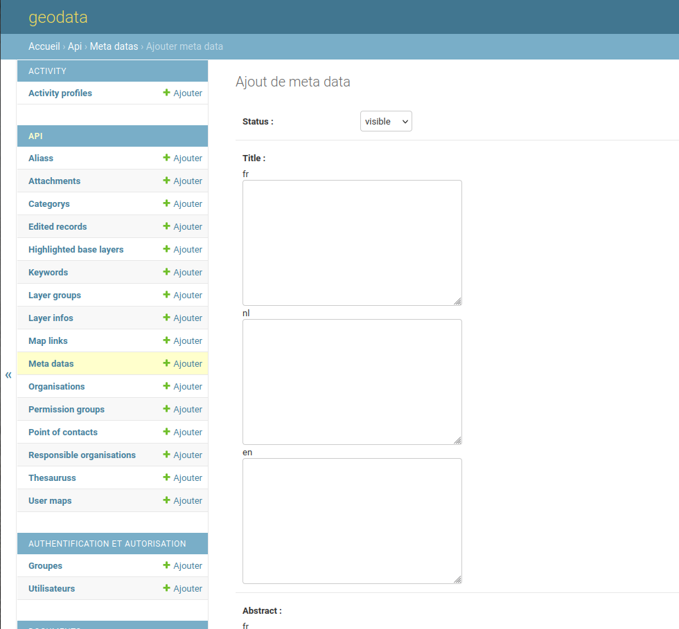 Geographical ressources (GeoJSON data) on cartostation are represented by metadata instances.